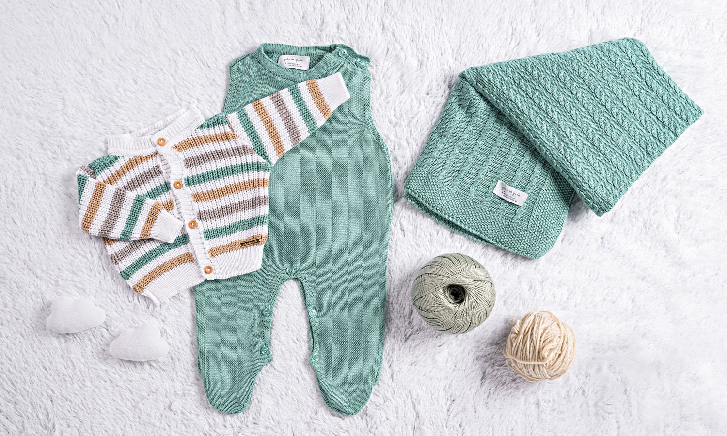Com aconchego e suavidade, o macacãozinho verde liso possui dois botõezinhos de acrílico no ombro e outros cinco no cós, para facilitar a rotina de cuidados e as trocas de fraldas. O casaquinho tem quatro botões de madeira para descomplicar na hora de vestir o seu amor. A manta verdinha que acompanha a saída maternidade é feita com o toque macio do tricot e da trama trança!