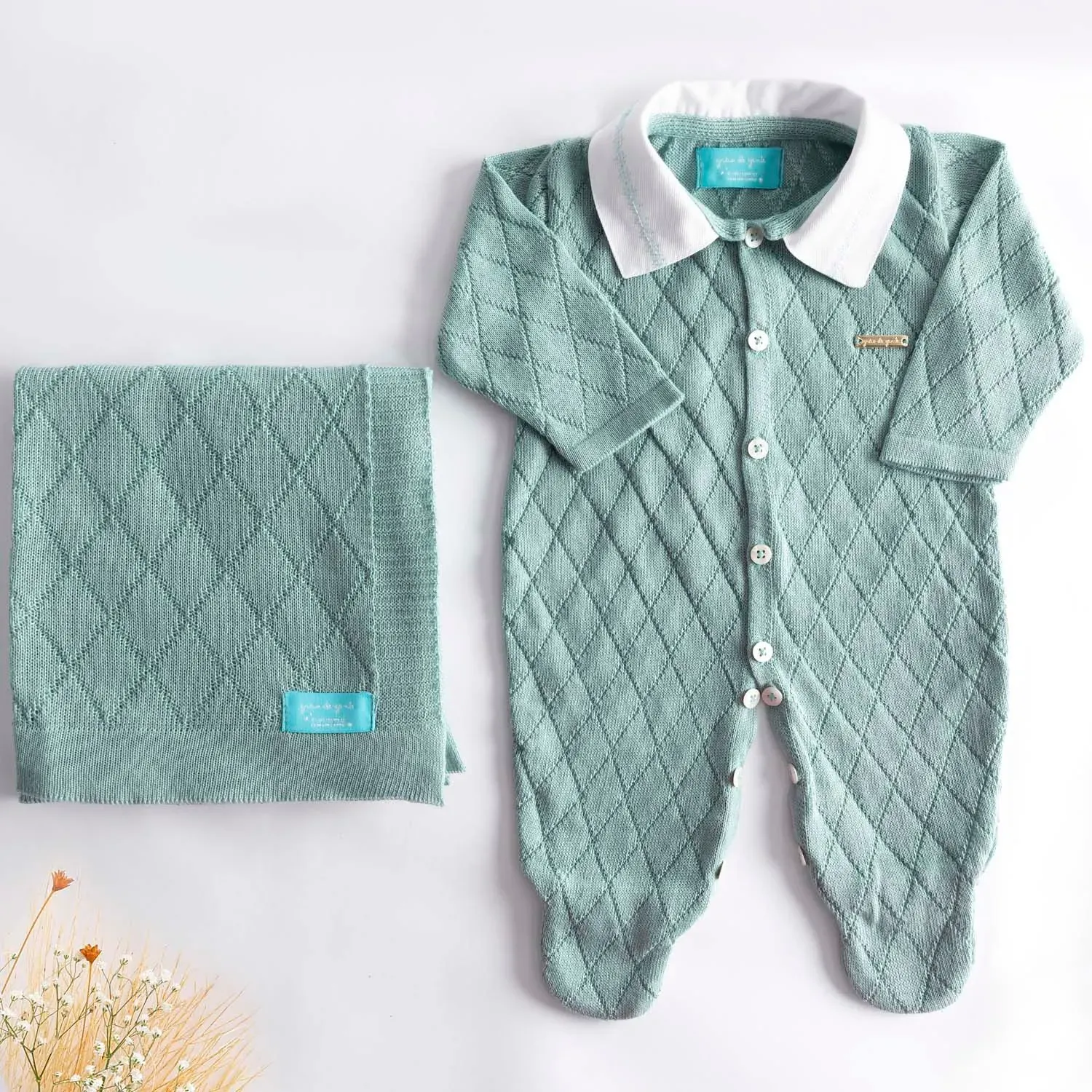 Saída Maternidade Tricot Verde Com Gola 02 Peças