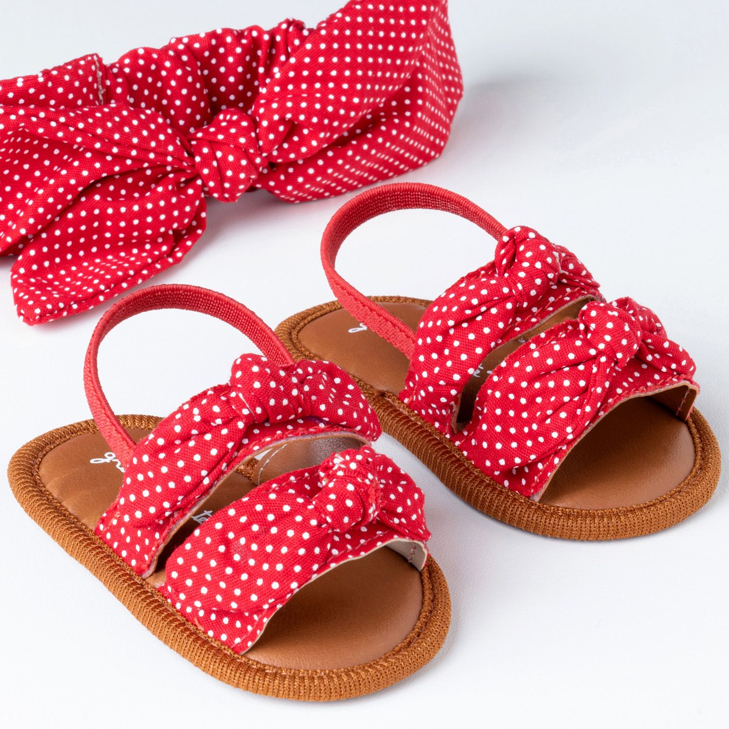 Sandália de Bebê com Faixa de Cabelo Nózinho Poá Vermelho Tam 18