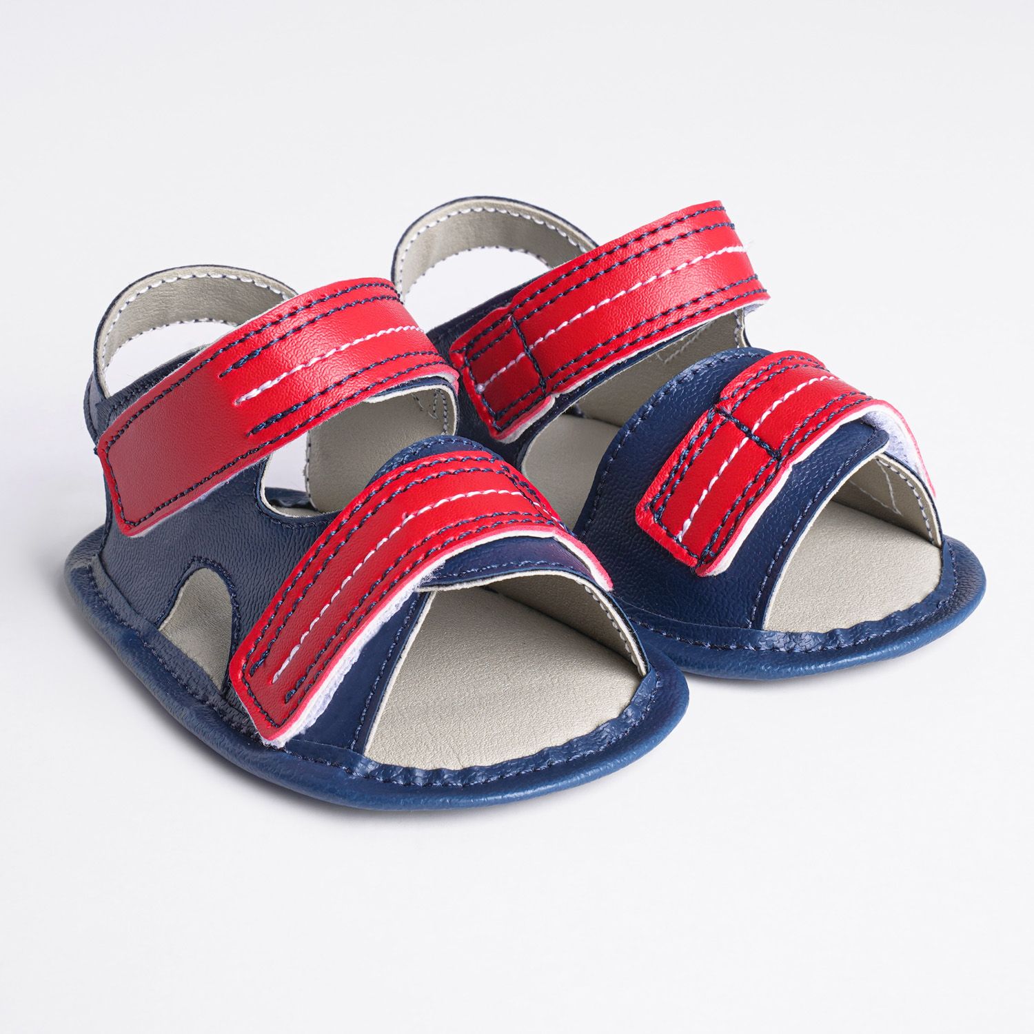 Sandália Papete de Bebê com Velcro Azul Marinho e Vermelho Tam 15