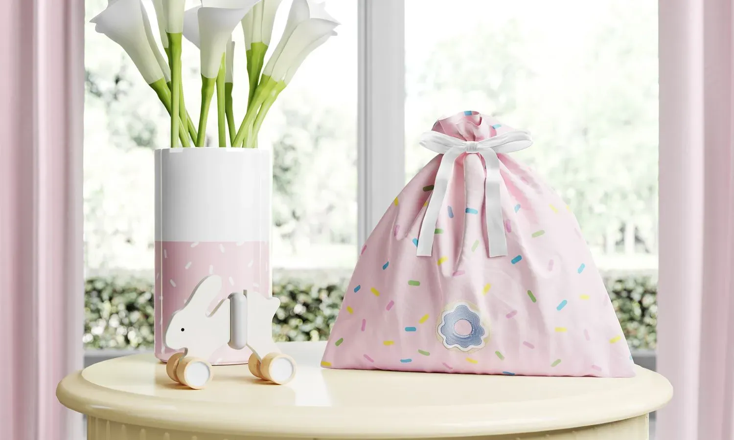 Para organizar as roupas do bebê que vão na mala maternidade com muito estilo e originalidade, conte com o Saquinho Maternidade para Roupinhas Donut! Esse saquinho exclusivo da marca Grão de Gente é feito com tecido cor de rosa com estampa de granulado colorido, laço e bordado delicado de donut. Conheça o conjunto completo com quatro Saquinhos Maternidade para Roupinhas Doce Encanto!