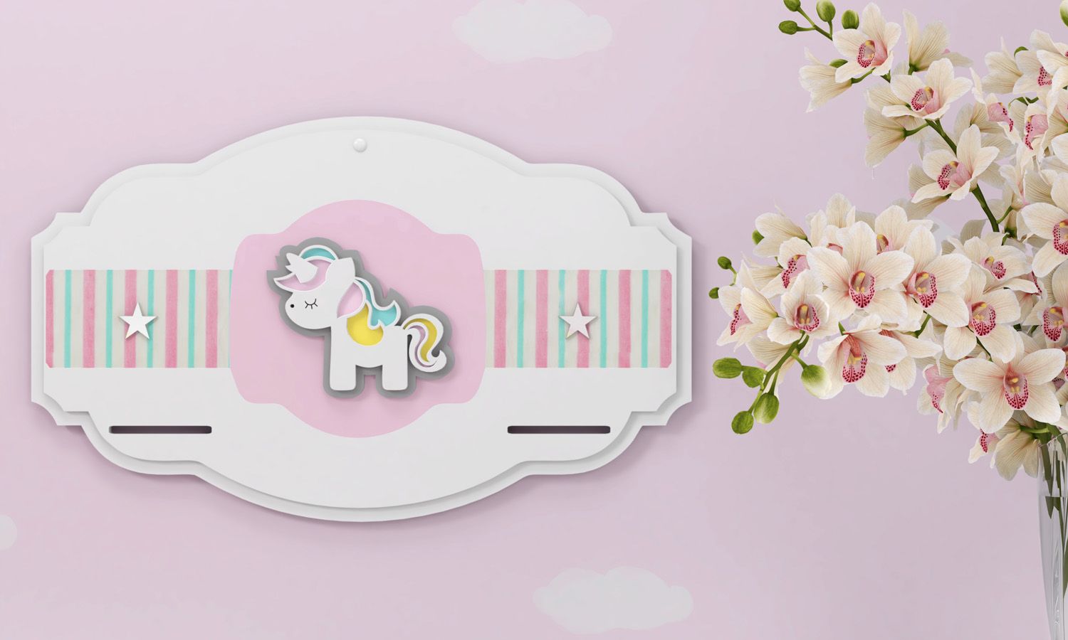 Para fixar o porta fraldas da sua princesinha com muito charme e delicadeza, a melhor escolha é o Suporte MDF de Porta Fraldas Unicórnio 3D. Perfeito para tornar o quarto de bebê ainda mais gracioso e prático, facilitando a rotina das mamães e papais nas trocas de fraldas diárias. O suporte foi confeccionado com madeira 100% MDF e possui acabamento com esmalte a base d'agua, tinta latex PVA e tinta latex acrílica, além de detalhes com estrelas espelhadas.