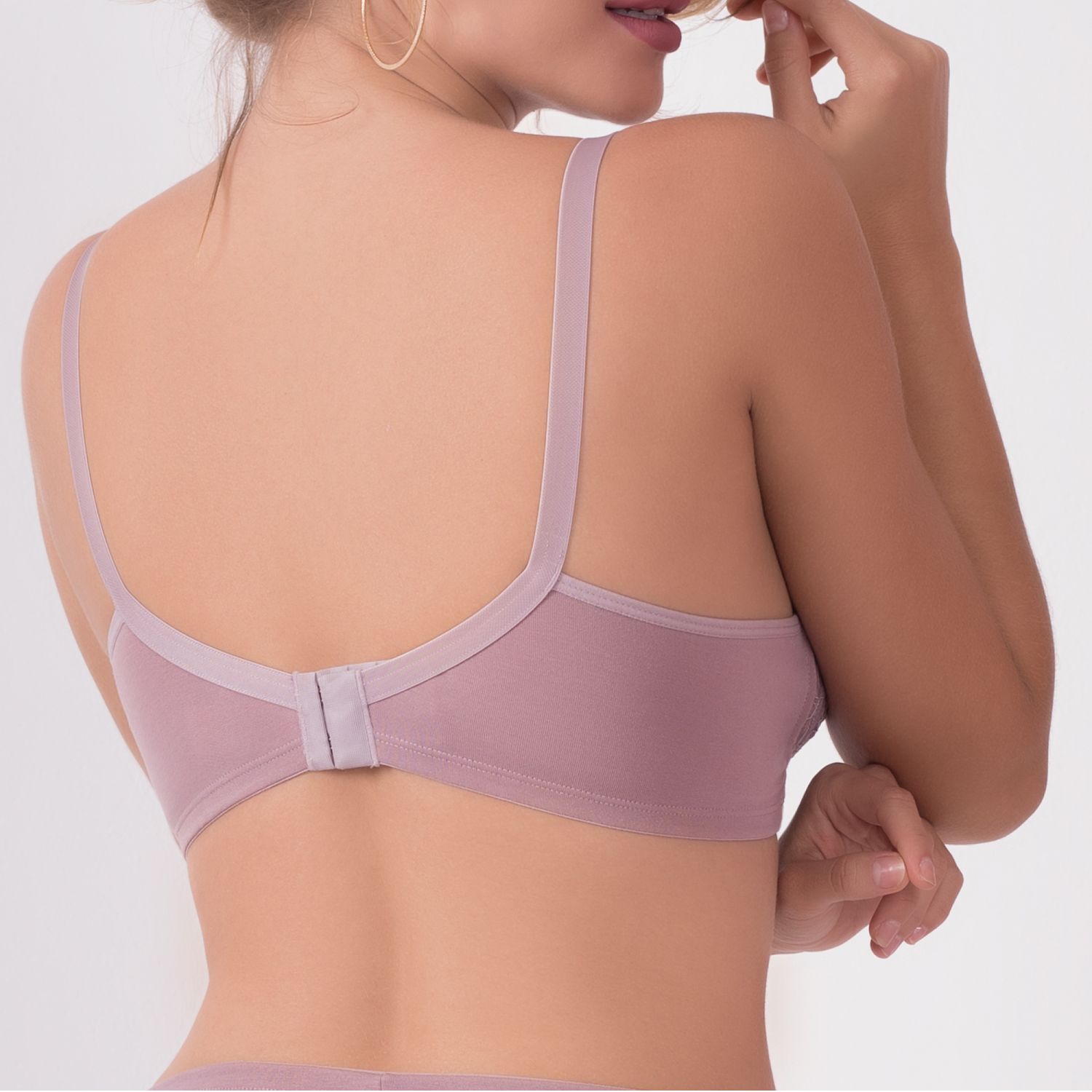Confeccionado com a suavidade do tecido de algodão sustentável, é super macio e hipoalergênico, possui bojo triângulo em malha de microfibra e fecho traseiro com quatro regulagens, conta ainda com pequenos detalhes em renda, trazendo um toque delicado para a peça.