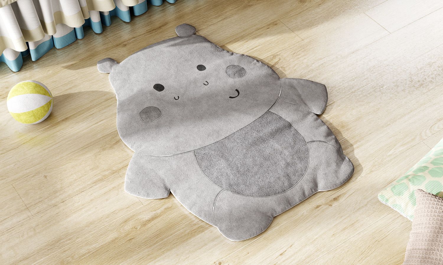 O Tapete Hipopótamo Cinza é uma peça exclusiva da Grão de Gente que vai levar um toque lúdico para a decoração do quarto de bebê ou infantil. Produzido com estampa exclusiva e a base antiderrapante agrega conforto, bem-estar e proteção para o seu amor brincar à vontade.