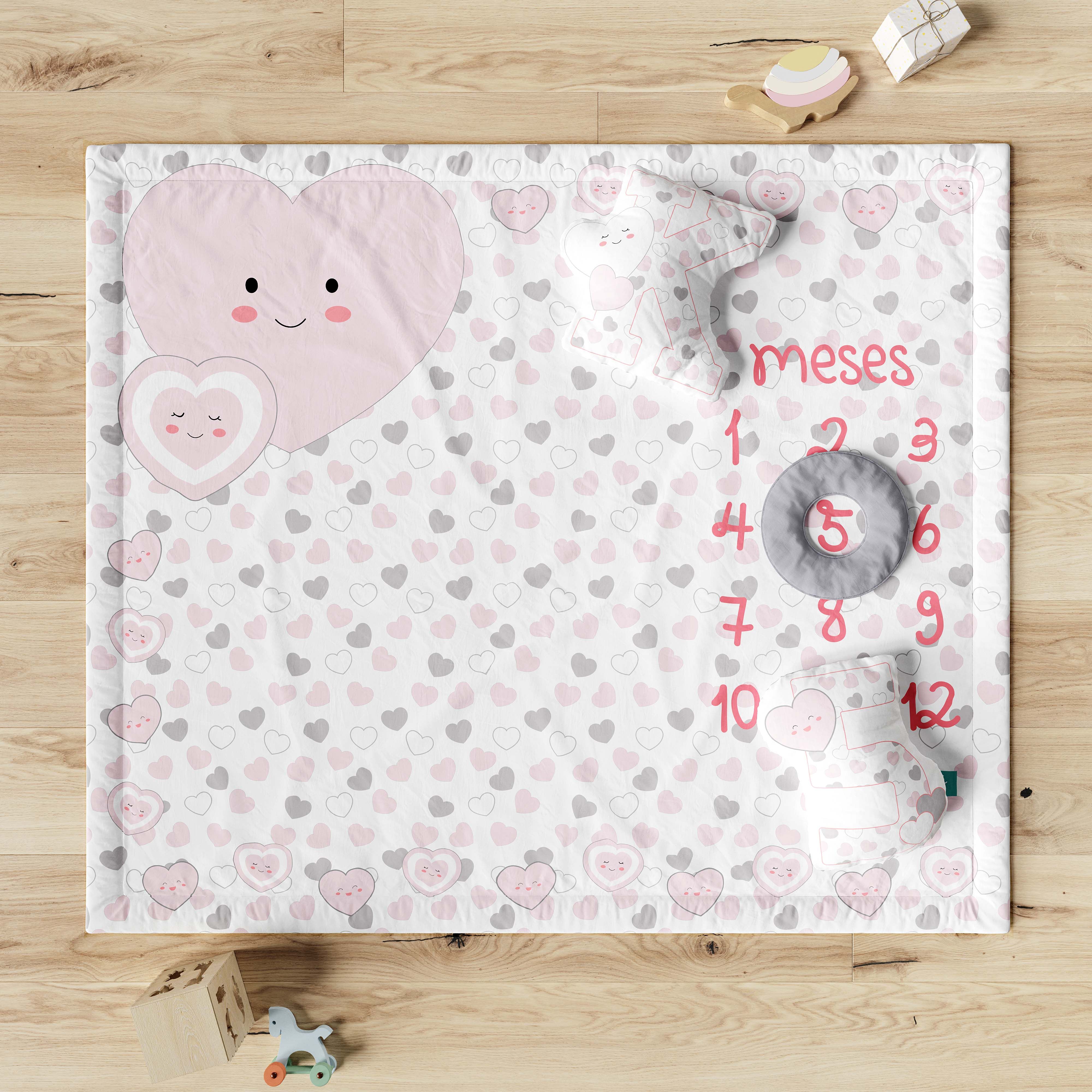 O Tapete Mêsversário Amor da Mamãe Rosa e Cinza é uma criação exclusiva da Grão de Gente para capturar e guardar para sempre cada momento especial do desenvolvimento do seu bebê.