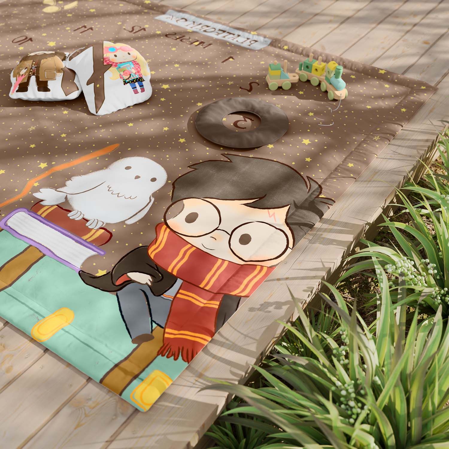 O Tapete Mesversário Harry Potter Plataforma 9 ¾ é uma criação exclusiva da Grão de Gente para capturar e guardar para sempre cada momento especial do desenvolvimento do seu bebê.