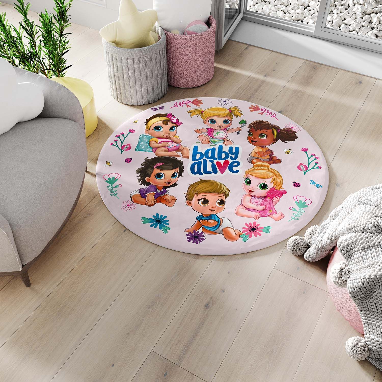 Criação exclusiva Grão de Gente, o Tapete Redondo Baby Alive foi idealizado especialmente para a criançada apaixonada pelas bonecas famosas em todo o mundo.