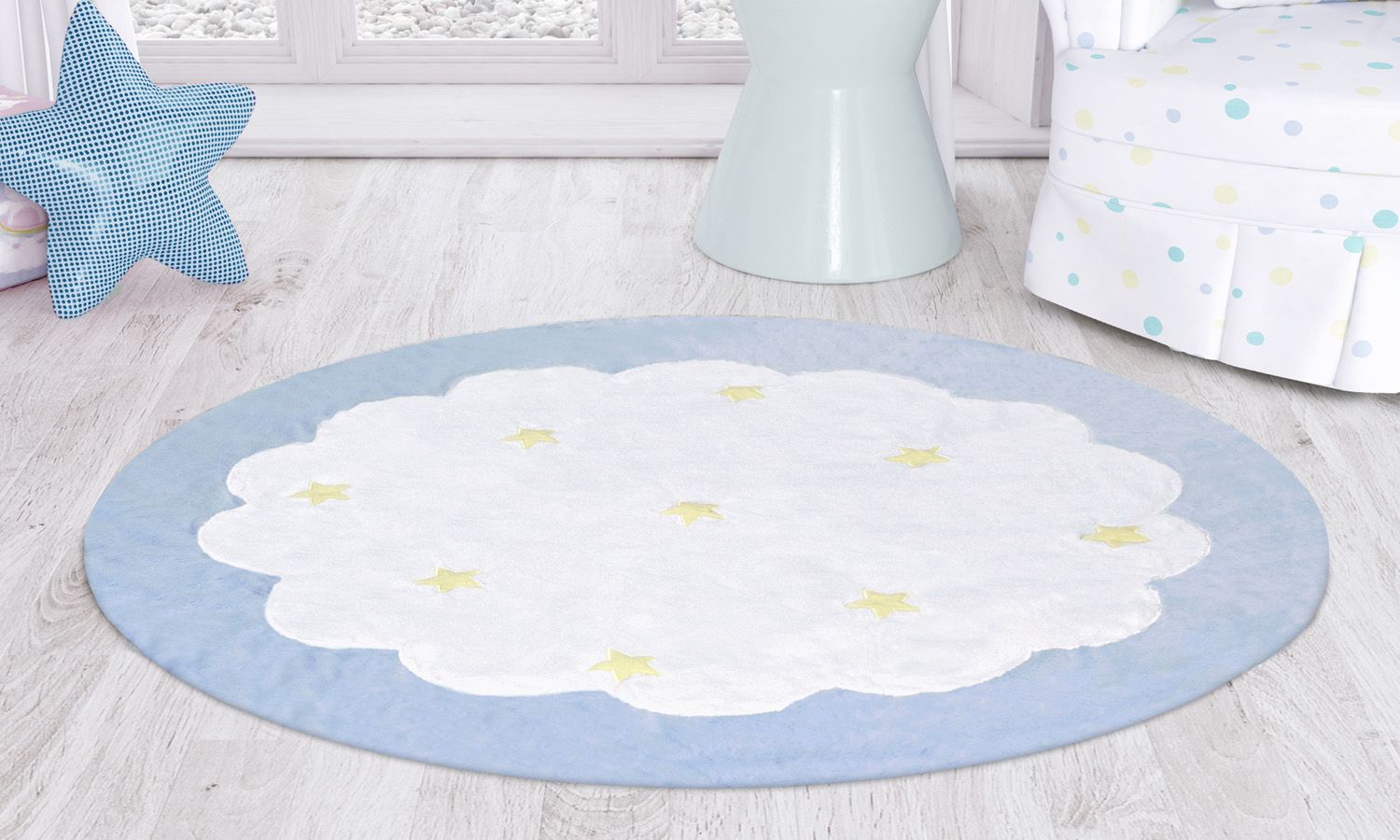 Tapete Redondo Estrelinhas Azul 90cm