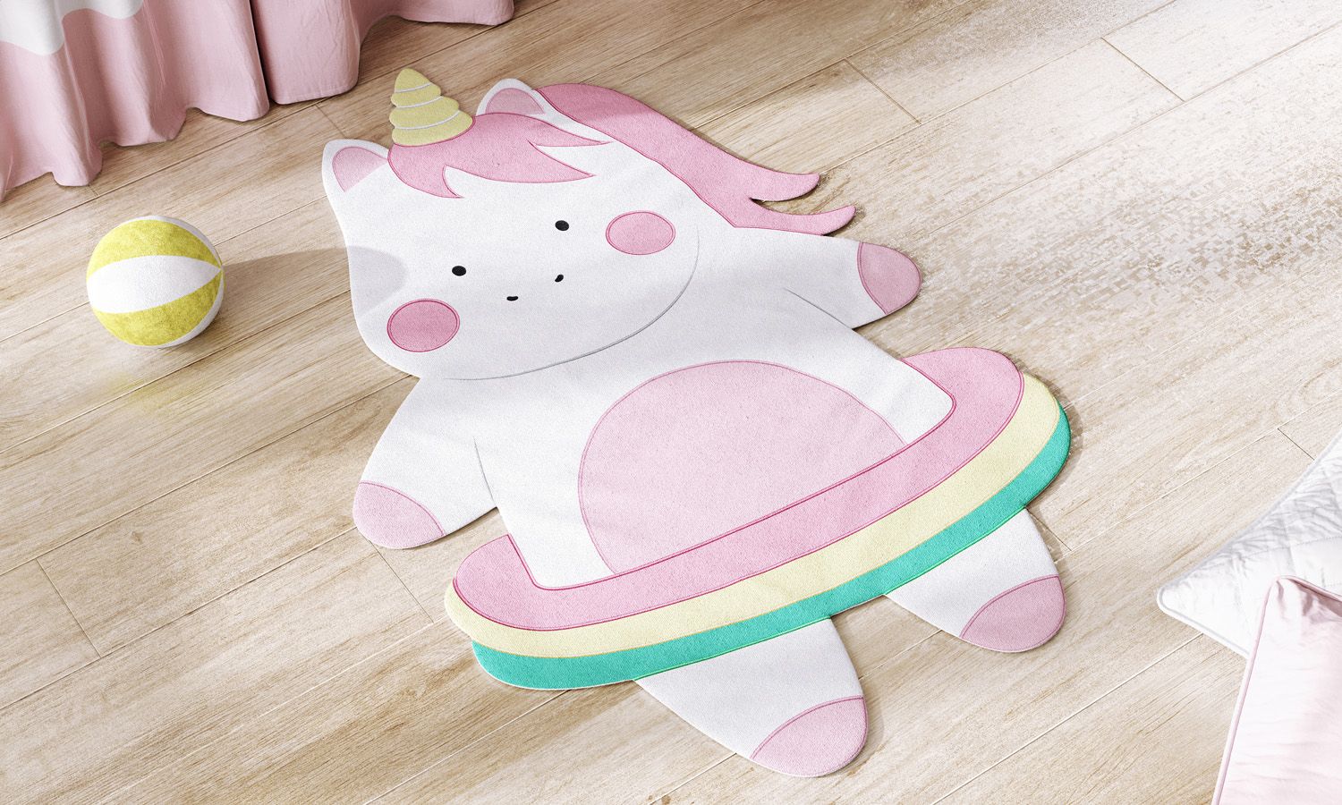 Para adicionar conforto e estilo ao quarto de bebê ou infantil, aposte no Tapete Unicórnio Arco-íris Colorido. Esse tapetinho estampado é uma exclusividade da marca Grão de Gente, confeccionado com tecido poliéster macio e verso antiderrapante, para criar um espaço protegido para brincadeiras e o banho de sol.