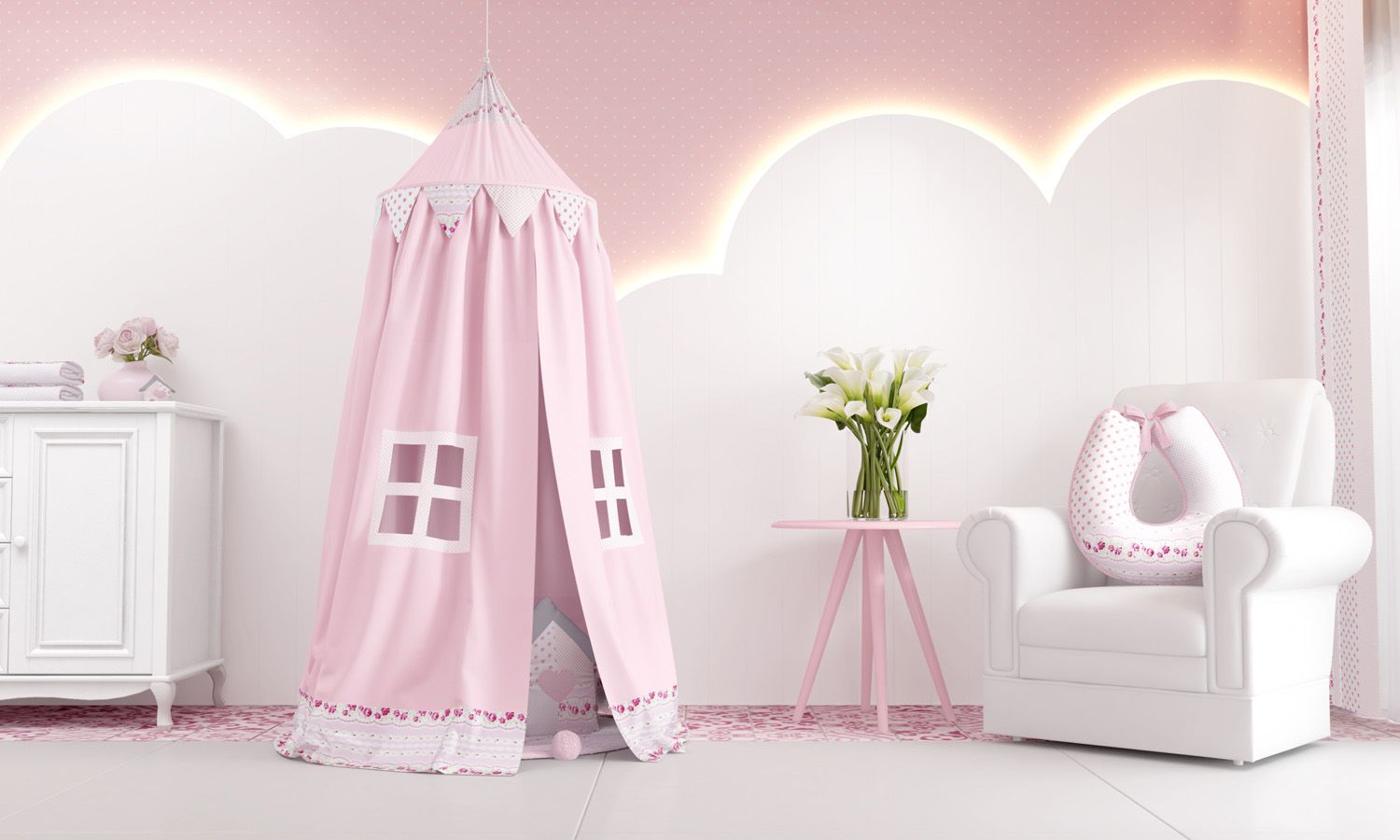 A Tenda Patchwork traz para a sua princesinha o sonho de um universo cor-de-rosa dentro do quarto de bebê, feito somente para ela! A peça de dois metros de altura transforma o cantinho em um verdadeiro lounge da brincadeira, onde a sua menina pode estimular a imaginação e o pensamento criativo que existe dentro de toda criança. Esse modelo foi feito com todo o carinho e com espaço calculado cuidadosamente para a neném aproveitar ao máximo a sensação de ter um pequeno mundo apenas para ela! Todo o capricho da Coleção Patchwork aparece na escolha das estampas, que criam um produto final impecável, com direito a janelinhas e barra decorada. Abuse da criatividade e embeleze o quarto de bebê com essa novidade encantadora! Você ainda pode colocar um tapetinho ou uma Almofada Multiuso da Grão de Gente para maior conforto da pequena. Confira as outras peças da Coleção Patchwork e se apaixone!