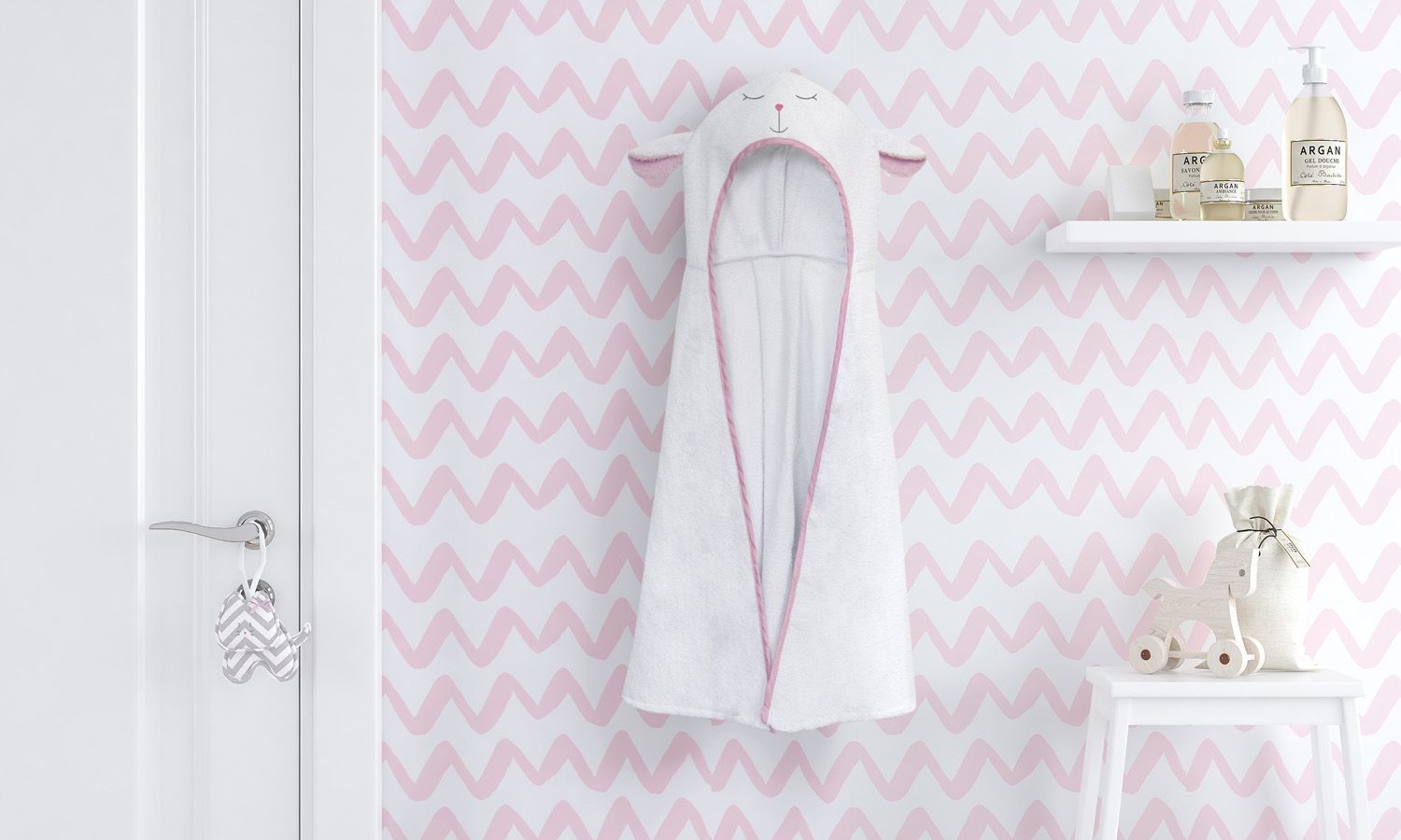 Como não poderia ser diferente, a Grão de Gente caprichou no design dessa linda toalhinha e bordou lindas orelhinhas de carneirinha para deixar sua menininha ainda mais graciosa!