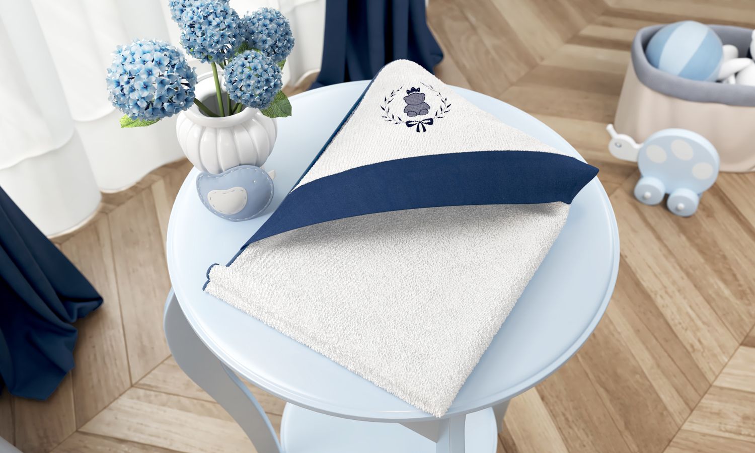 Banho quentinho e aconchegante só com a Toalha com Capuz Ursinho Clássico! Esse acessório com tecido macio e felpudo vai deixar o bebê sequinho e confortável depois de um momento tão íntimo e agradável. Essa toalhinha forrada com tecido de fralda é confeccionada em 100% algodão, protegendo a pele sensível do recém-nascido. Ela ainda acompanha um lindo capuz com bordado de ursinho azul marinho, que vai proteger a cabecinha e ouvido do seu pequeno príncipe.