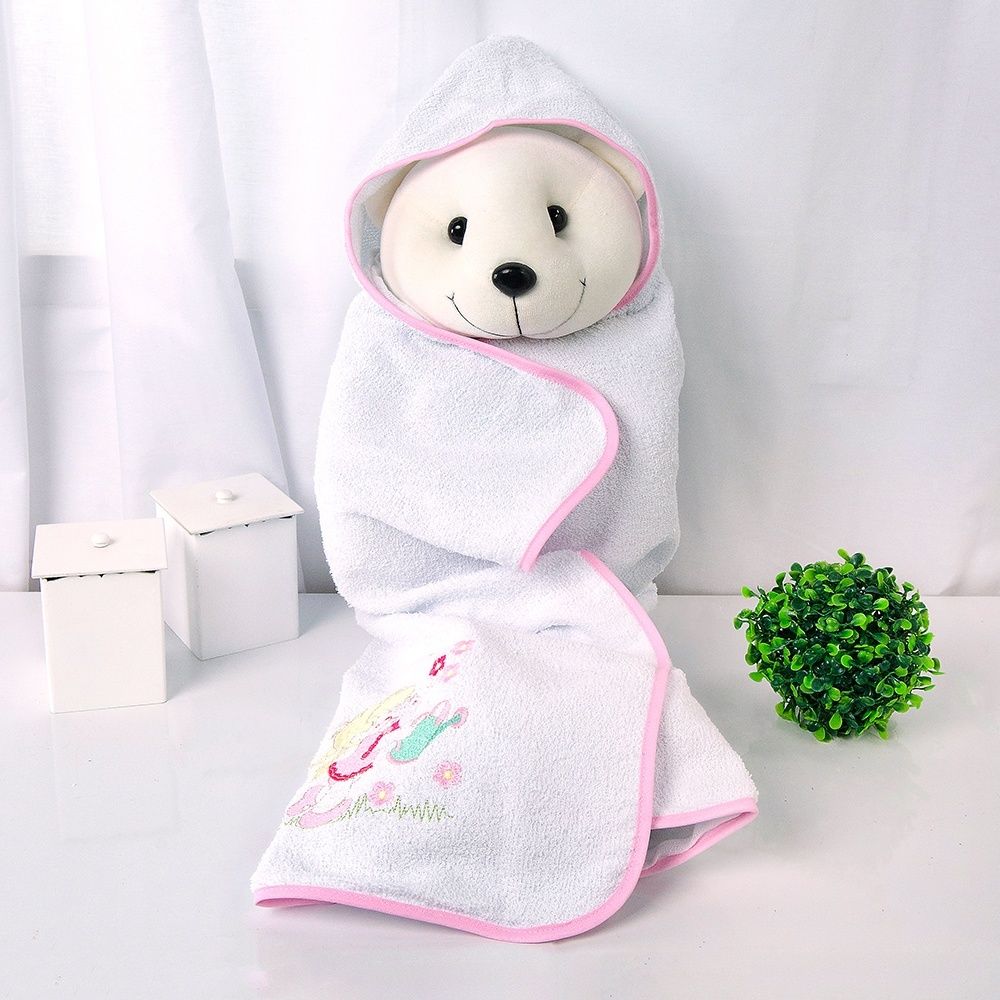 | 1 | Toalha de Banho forrada com touca 80cm x 70cm | |