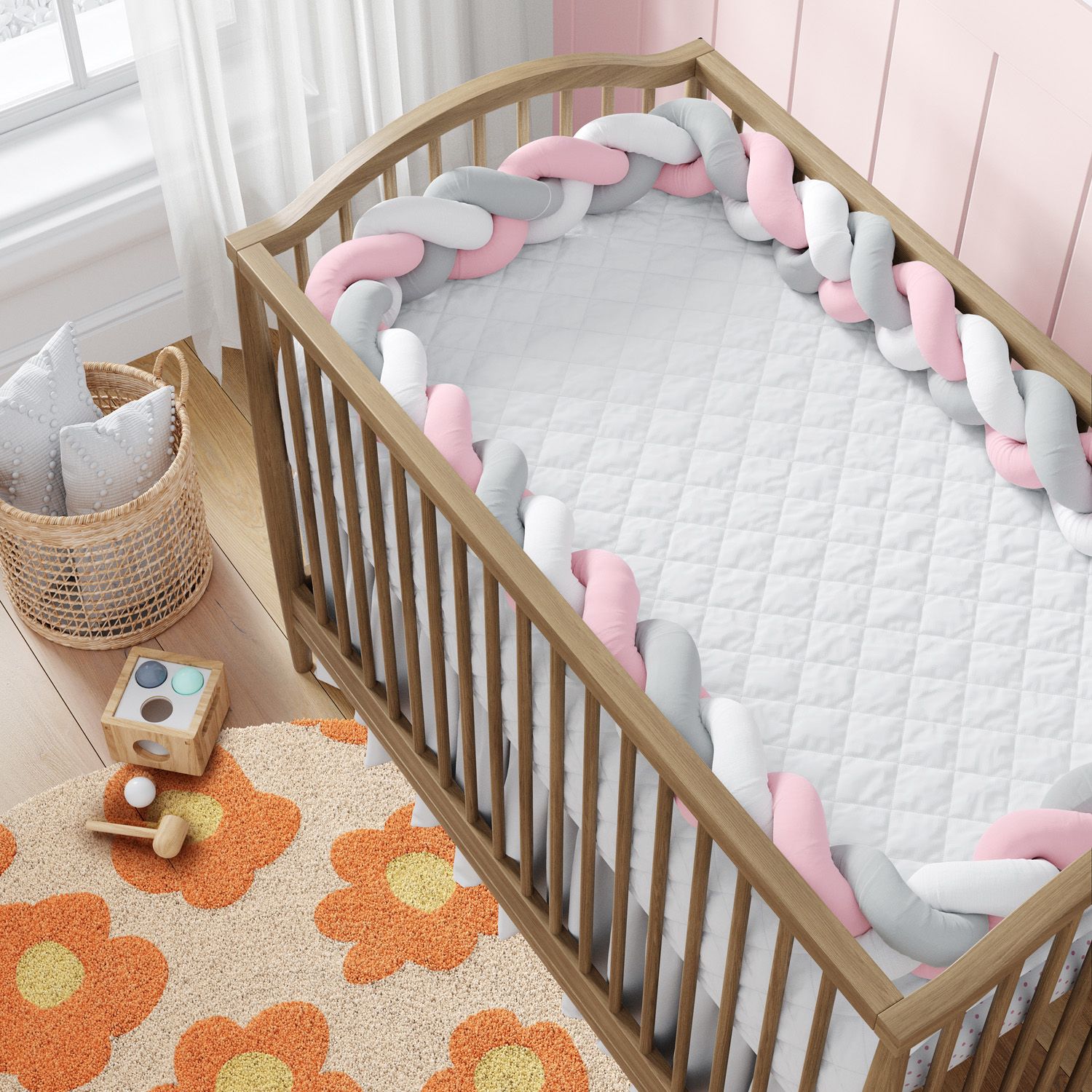Trança Lateral Para Berço Branco Rosa e Cinza 3,80M