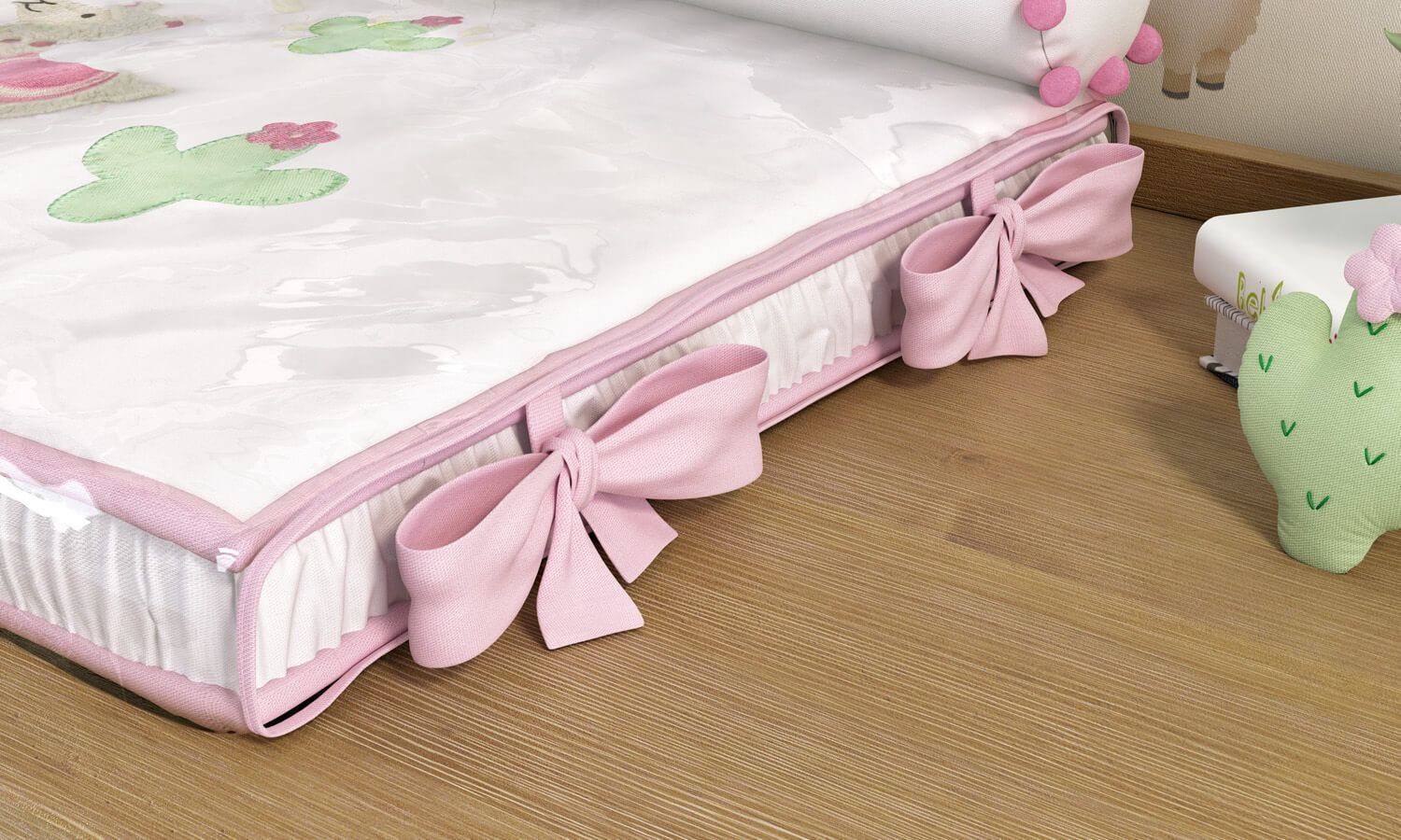 Funcionalidade combinada com o charme das Amiguinhas Lhamas! O Trocador de Fraldas Pompom Lhama – Linha Sabrina Sato Mom é perfeito para tornar a rotina de cuidados com a higiene da neném mais funcional. O trocador pode ser apoiado sobre a bancada, cômoda ou até mesmo numa caminha, sob observação dos responsáveis. Com pompons, lacinhos, enchimento de espuma fofinha e capa plastificada que conserva a peça e facilita a higienização, esse trocador com bordado de lhama e cactos é essencial para um quarto de bebê completo!
