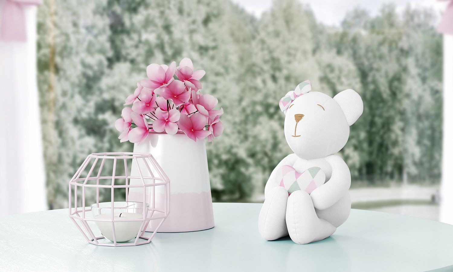 Uma ursinha delicada e charmosa no quarto de bebê dos sonhos! A Ursinha Branca com Coração Estampa Geométrica Rosa 42cm é perfeita para o cantinho mais especial da casa. Ideal para compor o quartinho e encantar a sua princesinha. O tecido 100% algodão é suave e perfeito para o seu amor abraçar a ursinha muitas vezes. Seu design lúdico tem influência do estilo montessoriano, que incentiva o estímulo da imaginação e criatividade, com esse produto sua princesa vai se sentir em um universo cor-de-rosa.