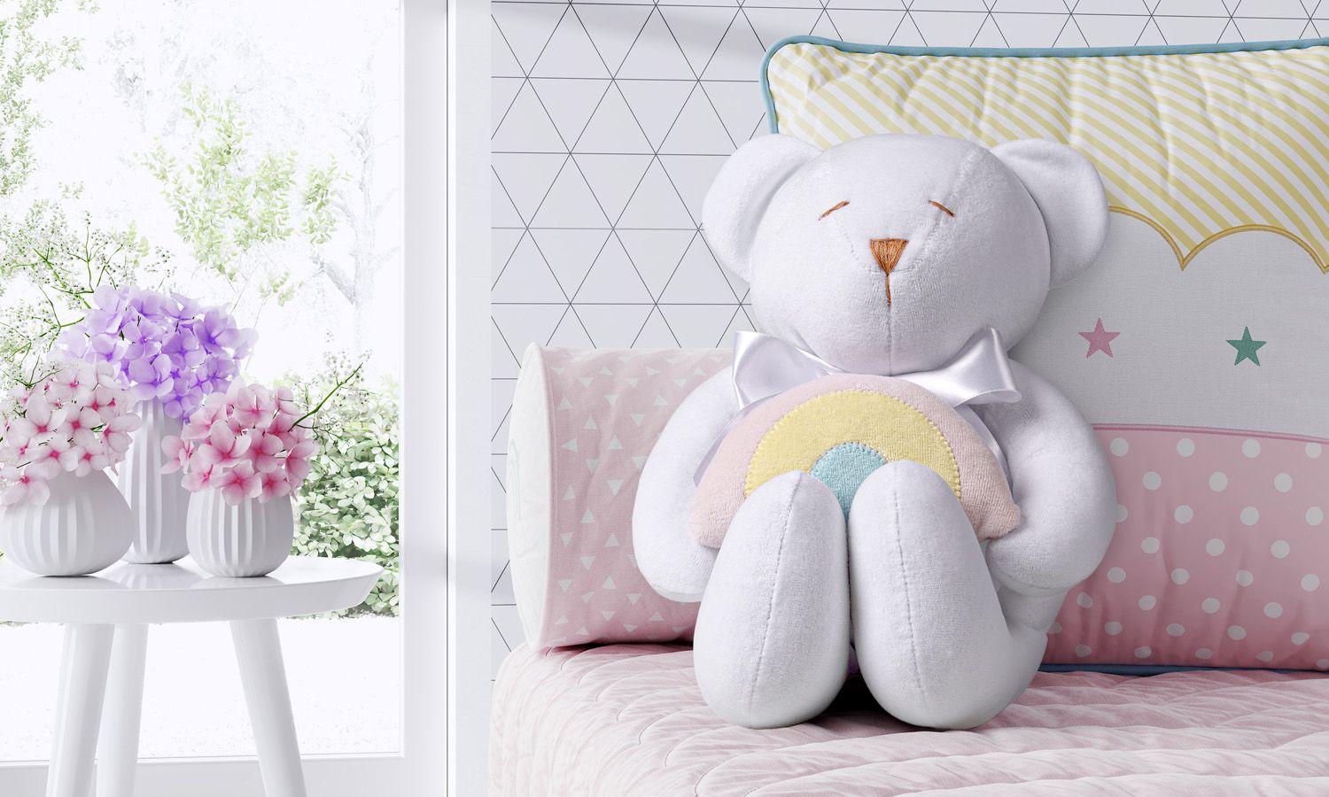 Esse charmoso ursinho de plush branco, com laço de cetim, narizinho bordado à mão e arco-íris vai acompanhar sua menina nos sonhos mais lindos! Além de completar a decoração com estilo lúdico e multicolorido do quarto da bebê, o Urso Branco com Arco-íris 42 cm é perfeito para criar lindas lembranças!