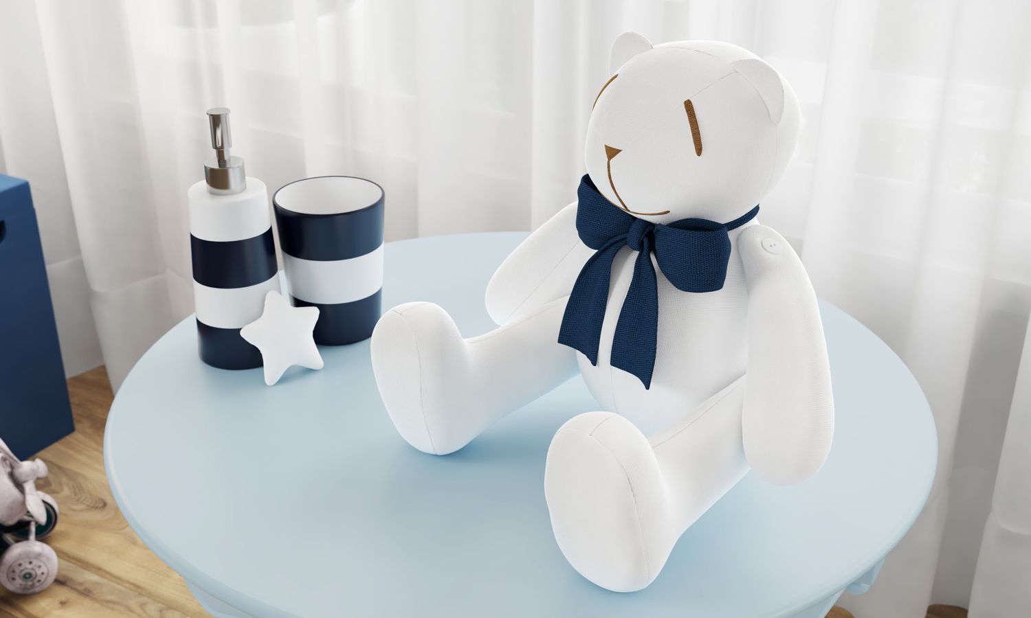 Um quarto de bebê sem um ursinho não está plenamente decorado! Nosso Urso Branco com Laço Azul Marinho 25cm dá um toque afetivo para o enxoval e torna a atmosfera do ambiente mais lúdica! Confeccionado com a suavidade da malha 100% algodão, a peça com gravata traz uma proposta delicada para encantar o ambiente mais especial da casa. Além de estimular a criatividade das crianças, esse ursinho de pelúcia completa lindamente a decoração do quarto dos sonhos!