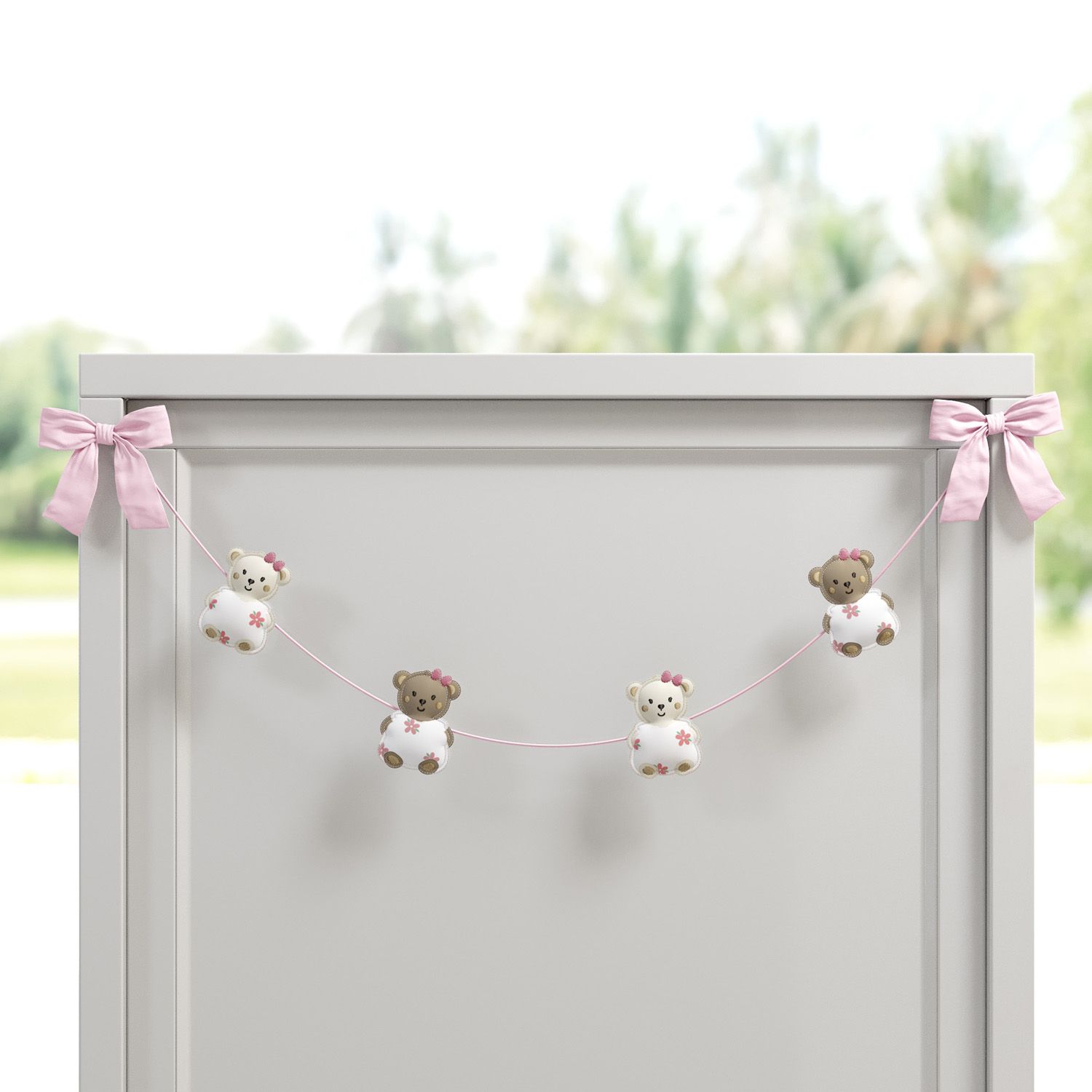 O charme do Varal de Berço Ursinha Floral Rosa vai encantar toda a família! Com almofadinhas fofas de ursinhos, o acessório pode ser usado de várias maneiras no quarto de bebê: no berço, na parede, na janela ou em cabideiros.