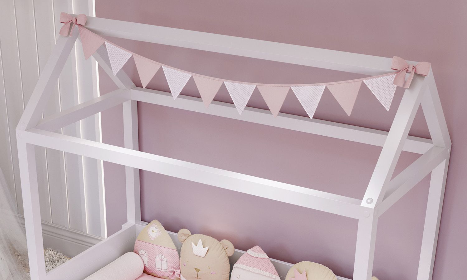 Varal de Cama Bandeirinhas Branco/Rosa 1,60m