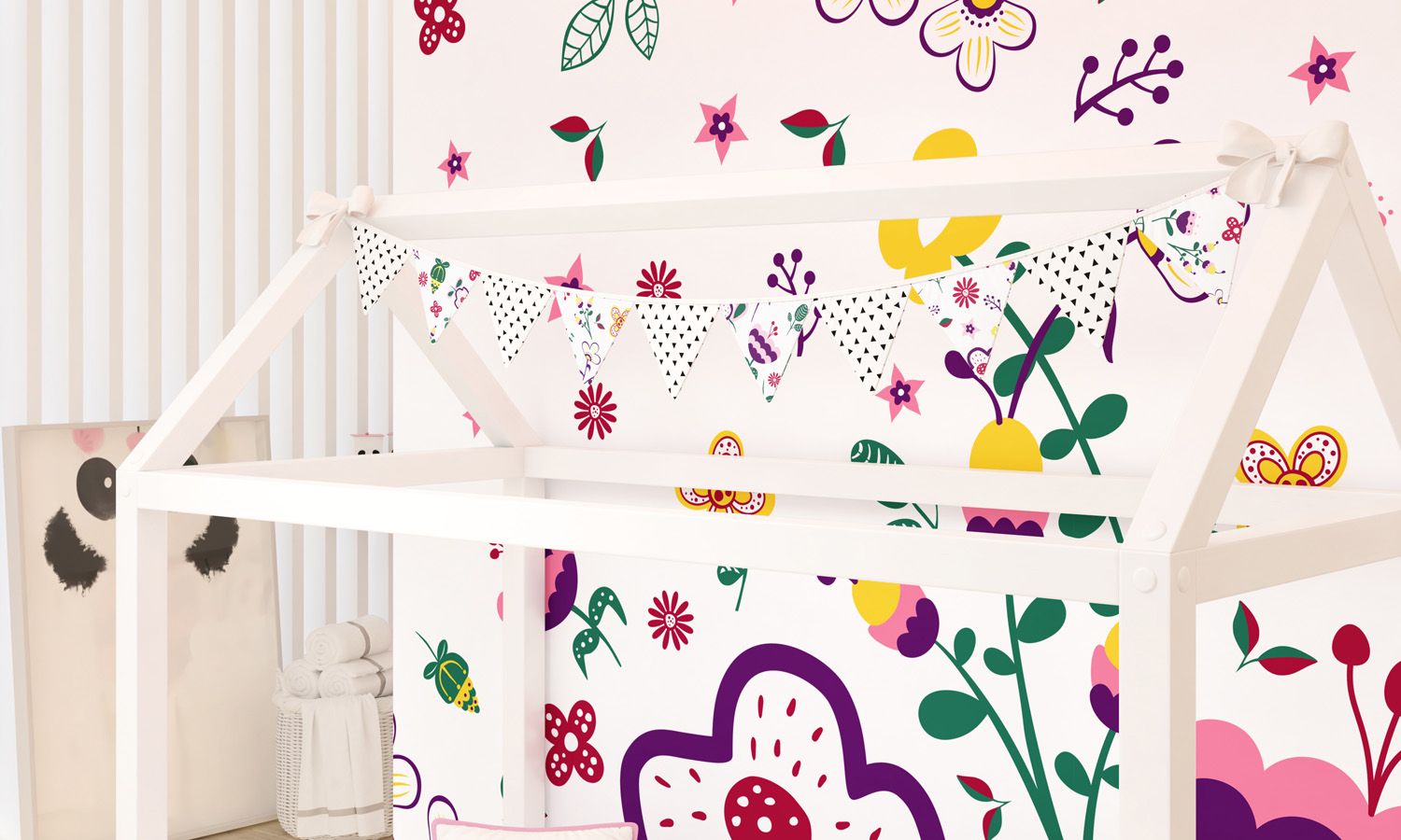 Varal de Cama Bandeirinhas Floral Moderna 1,60m