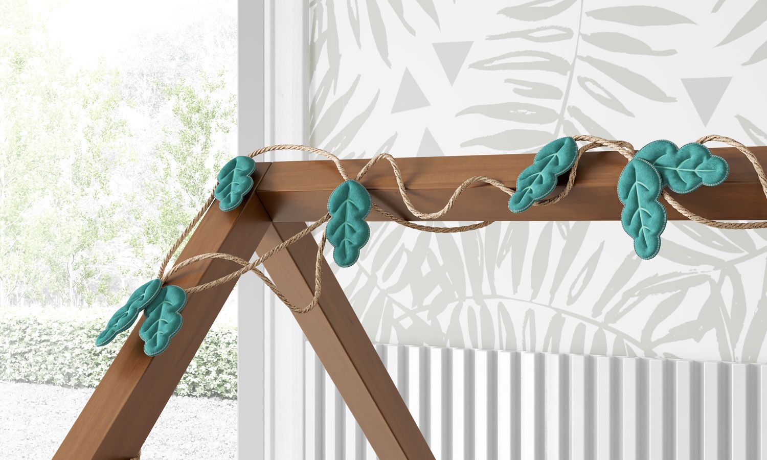 O Varal Decorativo Folhas Safári traz um toque criativo e lúdico para o quarto de bebê. Uma proposta que exalta a conexão com a natureza e a tendência Safári para a decoração do cantinho do seu amor, com peças feitas de tecido e sisal com acabamento bordado!