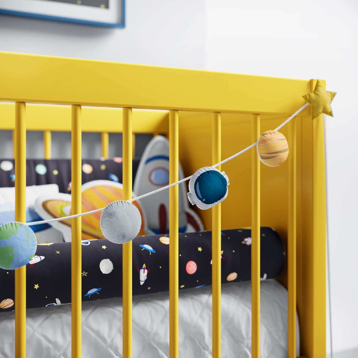 Para dar um toque lúdico e ainda mais criativo ao quartinho do pequeno astronauta, o Varal de Cama Planetas é a peça ideal.