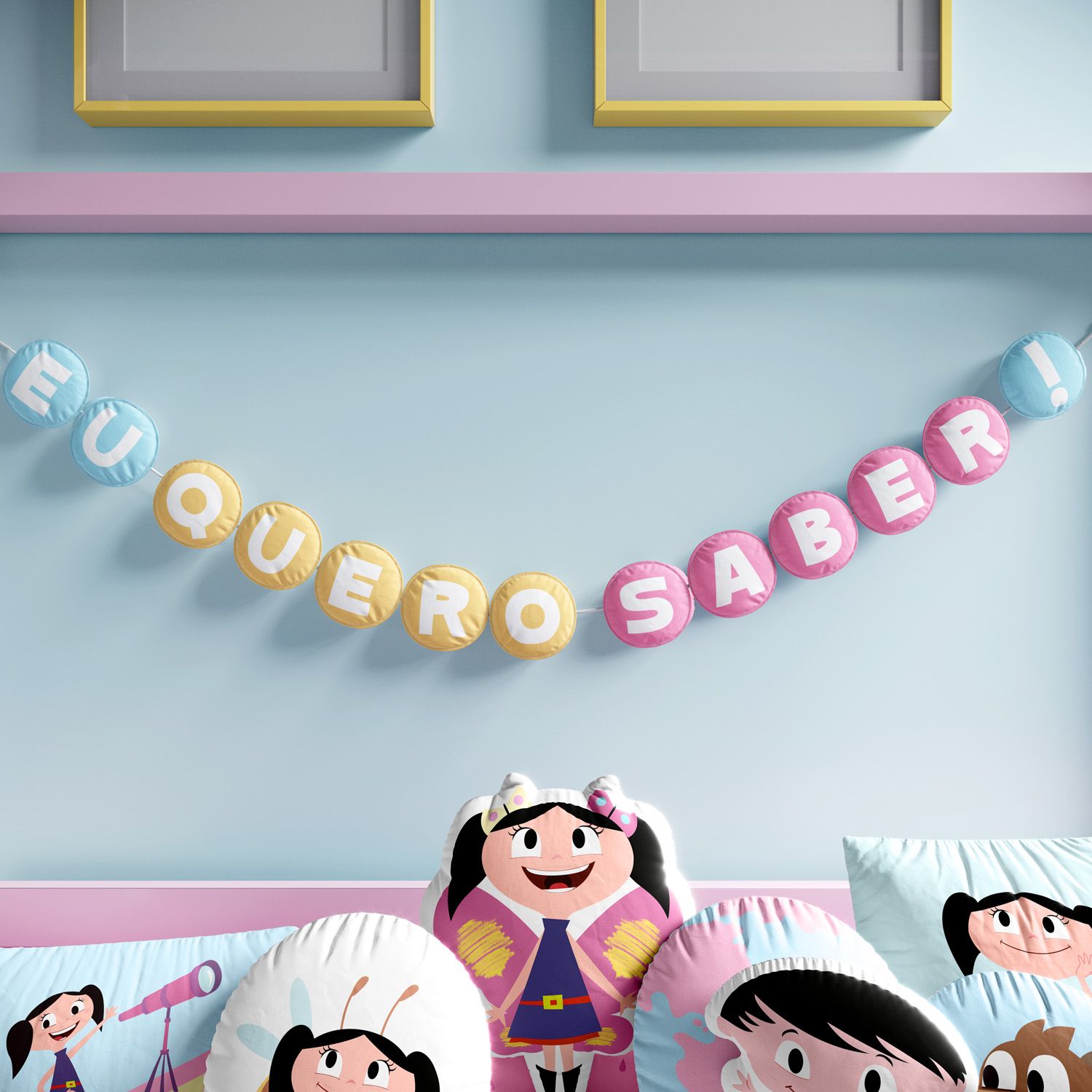 Com a frase “Eu quero saber!", que é o nome de uma das músicas mais conhecidas do O Show da Luna, nosso varal decorativo de tecido é um acessório versátil para compor a decoração do quarto de bebê, montessoriano e infantil!
