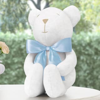 Ref: 35581 HSC PelúciasUrso Branco com Laço Azul Bebê 25cm
