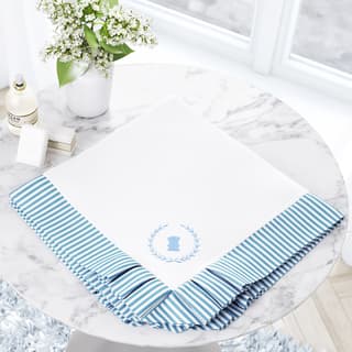 Ref: 135185 Grão de GenteManta Bebê Tricot Bordada Babado Azul 80cm