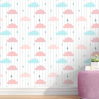 Ref: 175908 URA AdesivosPapel de Parede Retrô Tons Pastéis com Rosa Antigo
