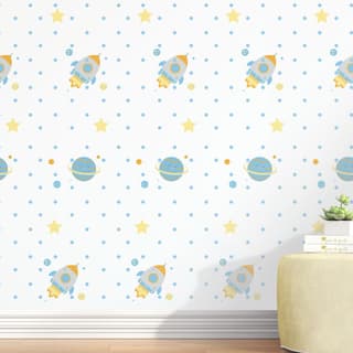 Papel de Parede Espacial Planetas e Foguetes Azul 3m