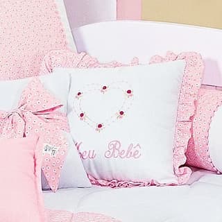 Ref: 103093 Grão de GenteAlmofada Quadrada Flor e Casinha Cogumelo Rosa 30cm