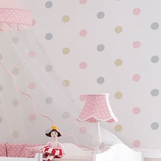 Papel de Parede Bolinhas Rosa/Cinza/Bege 10m