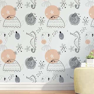 Ref: 173229 Grão de GentePapel de Parede FUN Fundo Cinza com Tons Pastéis