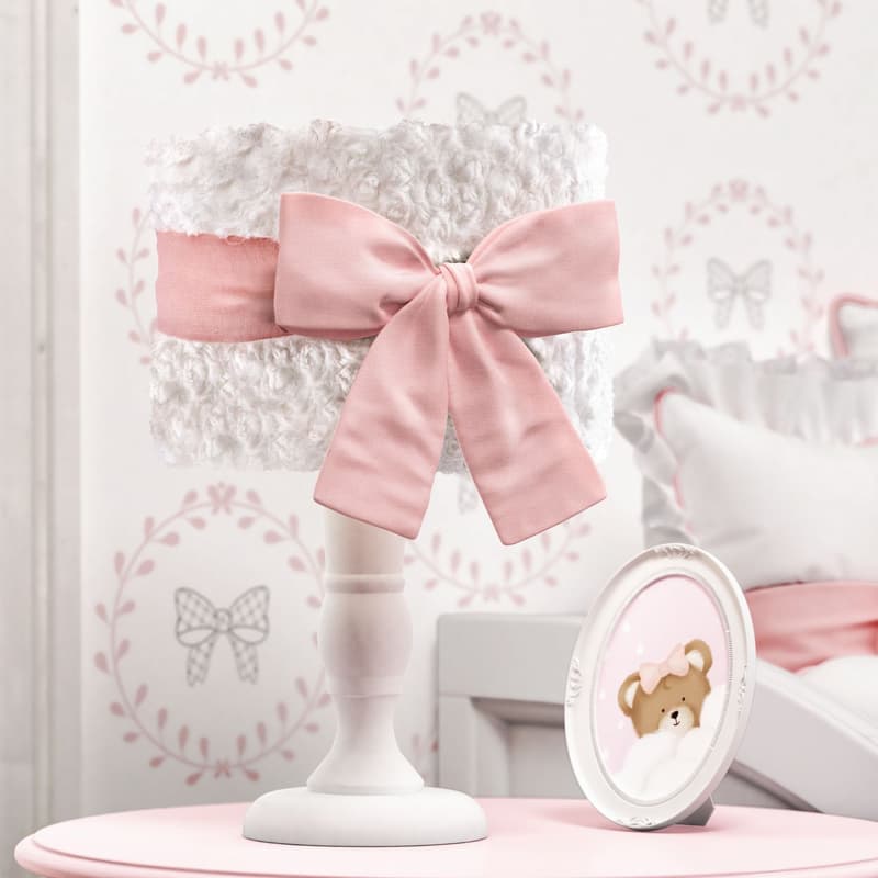 Abajur Madeira Pelúcia Flower com Laço Rosa