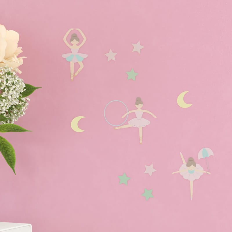 05 Adesivos de Parede Bailarinas Trapezistas Estrelas Rosé Menores 14cm x 9cm