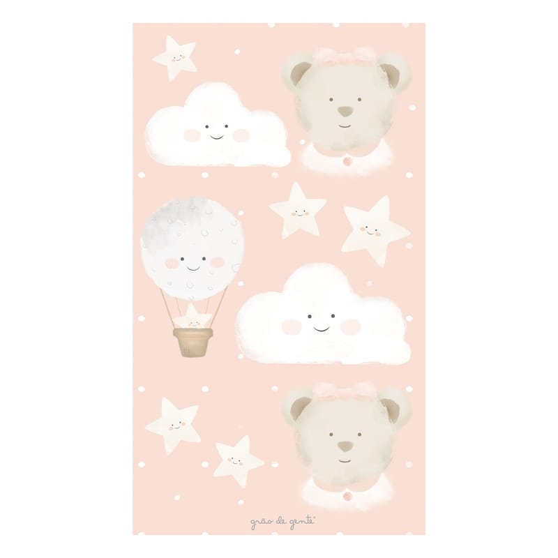 Adesivos de Parede Ursinhas, Balão, Nuvens e Estrelas Salmão