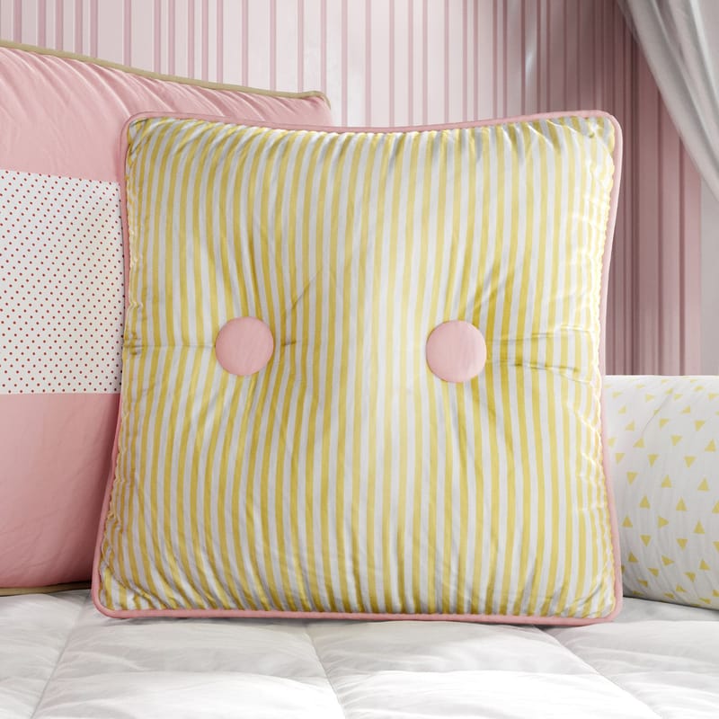 Almofada Botões Listrada Amarelo/Rosa 38cm da Grão de Gente: R$ 48,44 no PIX ou R$ 56,99 em ate 12x sem juros. Frete gratis acima de R$499. Entrega rastreada com garantia de 7 dias para trocas.
