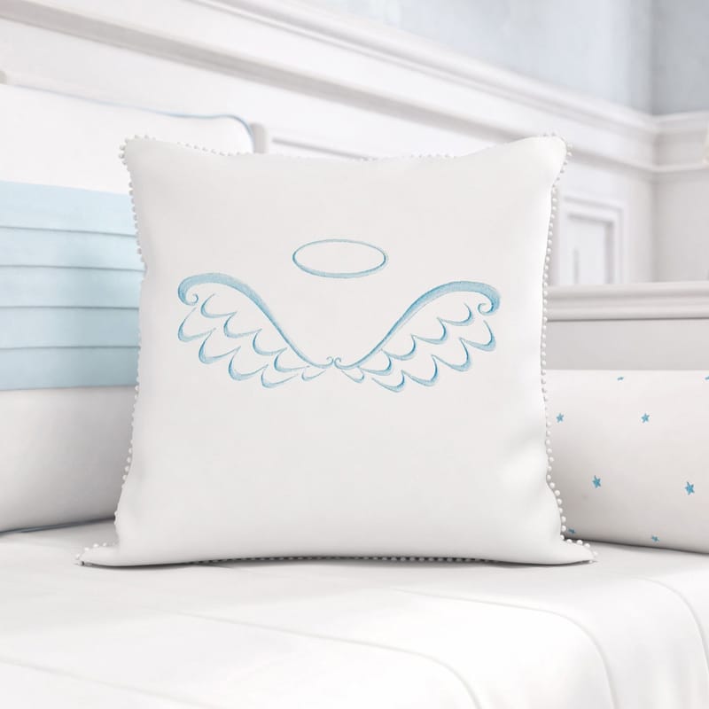 Almofada Quadrada Bordada Anjo com Pompom 38cm – Azul Bebê