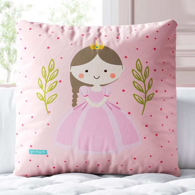 Almofada Quadrada Princesa Bel Poá Rosa 30cm