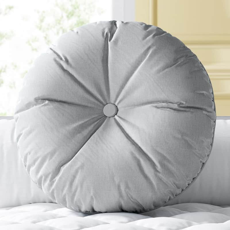 Almofada Redonda Botão Cinza 30cm da Grão de Gente: R$ 44,19 no PIX ou R$ 51,99 em ate 12x sem juros. Frete gratis acima de R$499. Entrega rastreada com garantia de 7 dias para trocas.