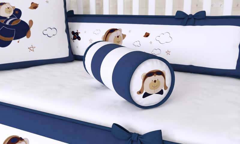 Proteção com estilo é função da Almofada Rolinho! Com tecido macio e um enchimento fofinho, ela preserva o conforto do seu grão de gente e embeleza o cantinho do berço com toda sofisticação e bom gosto da Coleção Urso Aviador.