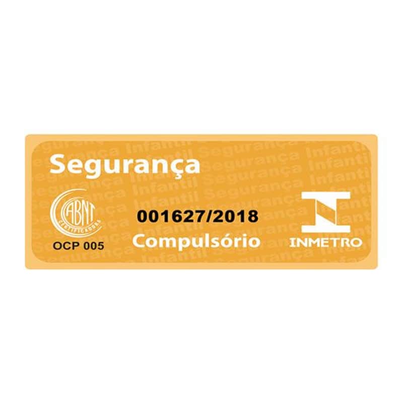 Produtos em algodão antialérgico e materiais certificados, seguindo normas de segurança do Inmetro.
