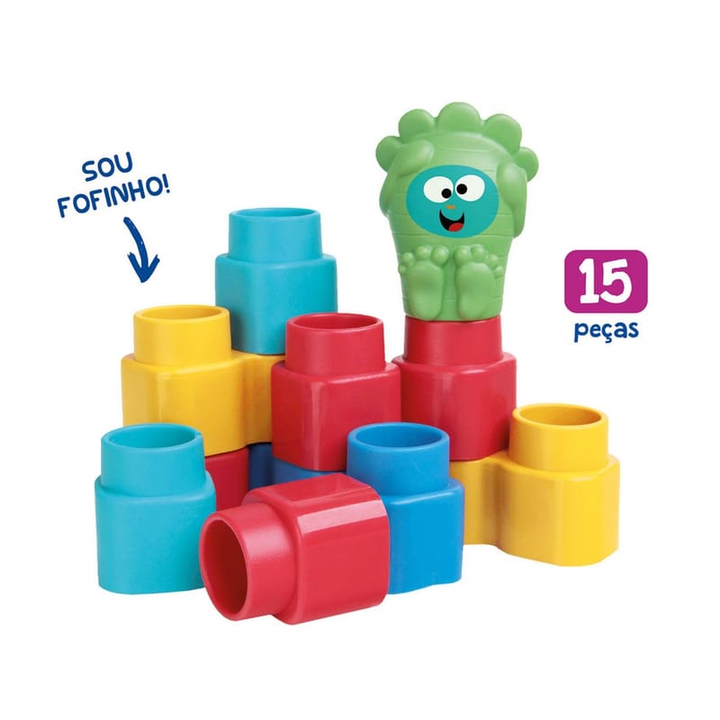 Contém quinze peças macias e fofinhas, coloridas e fáceis de encaixar, montar ou empilhar. O acessório vai estimular a criatividade e imaginação com diversos estímulos sensoriais.