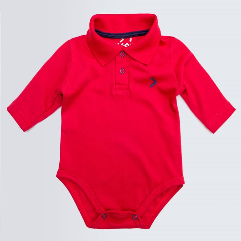 Body Manga Longa Bordado Urso Clássico Vermelho