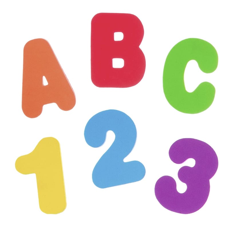 Feitos de material macio e à prova d'água, as letras e números podem ser usados como mordedor.
