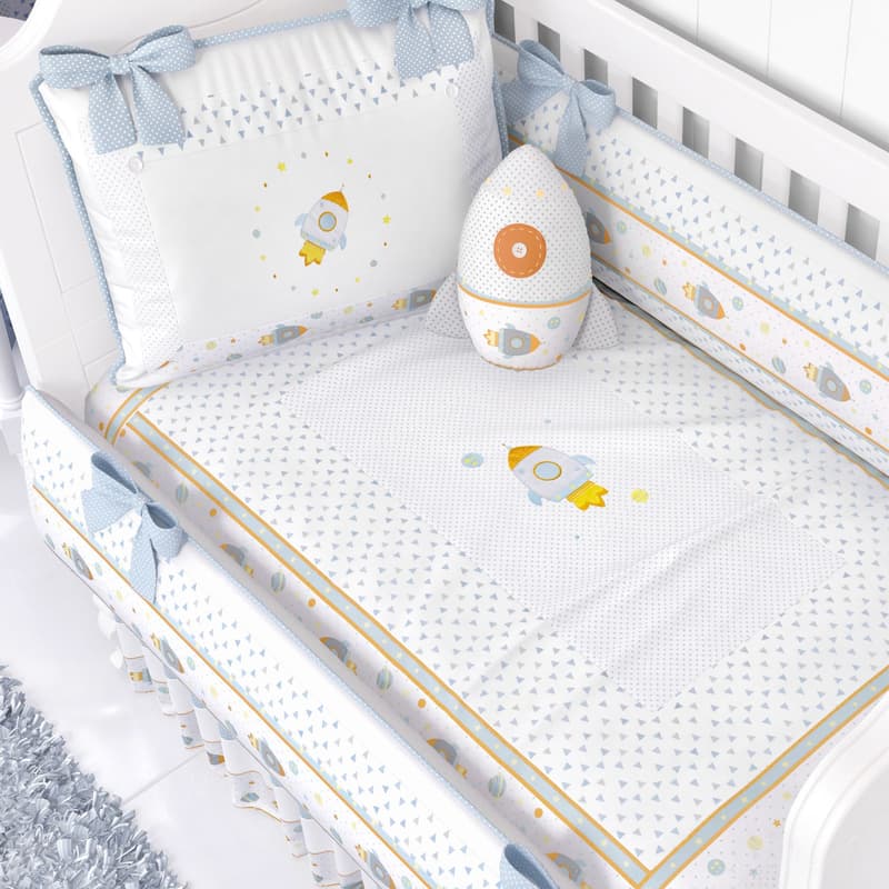 Com um foguetinho e planetas bordados em patchwork, esses desenhos são as referências do tema dessa coleção. O tecido 100% algodão é puro conforto, já o zíper torna esse produto mais prático, facilitando a lavagem. A Grão de Gente se preocupa sempre em decorar o quartinho do jeitinho que você sonhou, por isso criamos essa Capa com muito amor, para os pequenos sentirem que estão no aconchego do colo da mamãe!