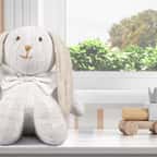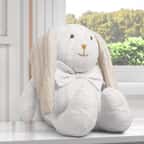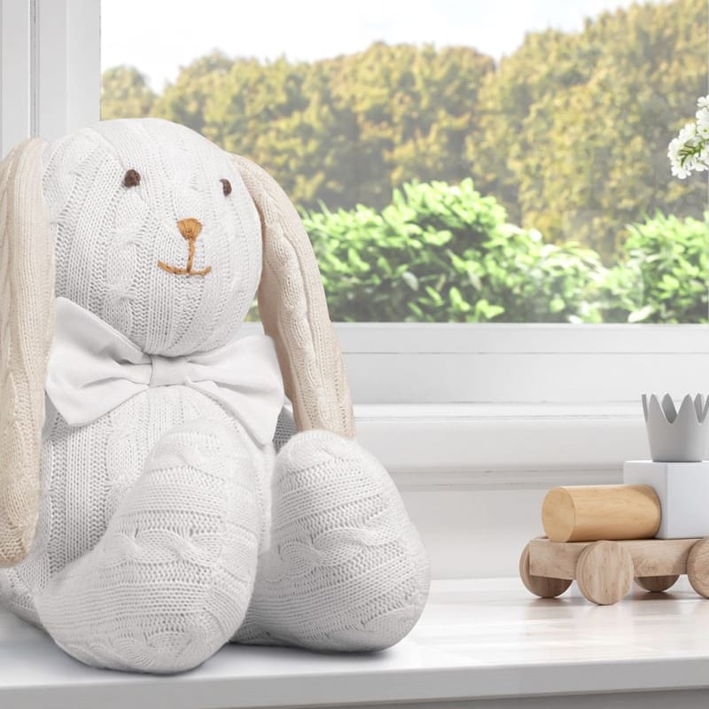 O Coelho Tricot com Gravata Branco 42cm tem uma gravatinha de tecido super charmosa. O enchimento é aconchegante, perfeito para o bebê abraçar!