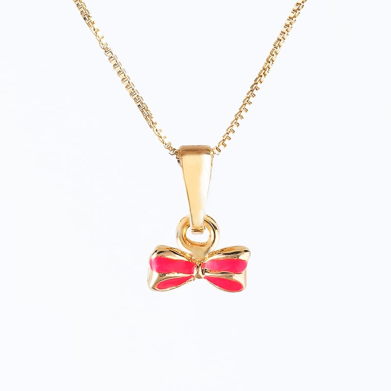 Colar Infantil Laço Pink e Ouro